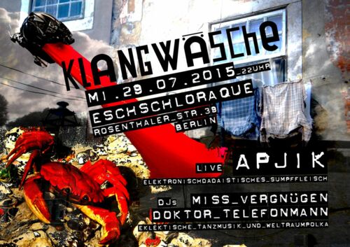 APJIK (Alex Jovanovic & Inox Kapell) kredenzen live experimentell-poppiges elektronischdadaistisches Sumpffleisch. Davor & danach gibt es eklektische Tanzmusik, Weltraumpolka & Sesamstrassenelektro mit Miss Vergnügen und Doktor Telefonmann.
